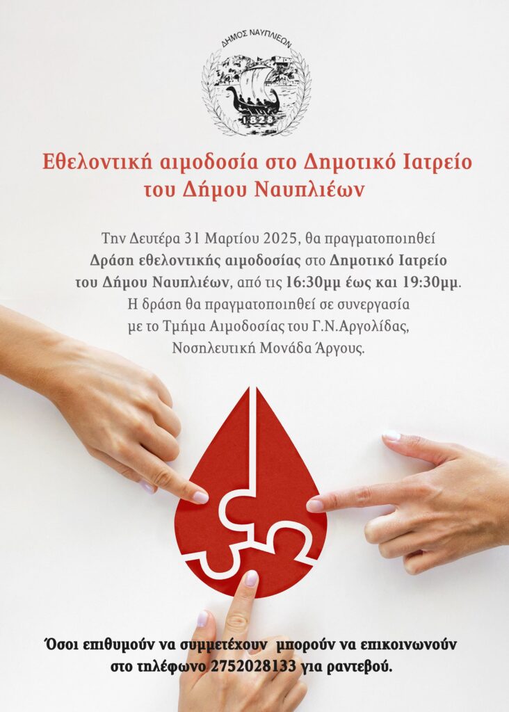 Εθελοντική αιμοδοσία στο Δημοτικό Ιατρείο του Δήμου Ναυπλιέων