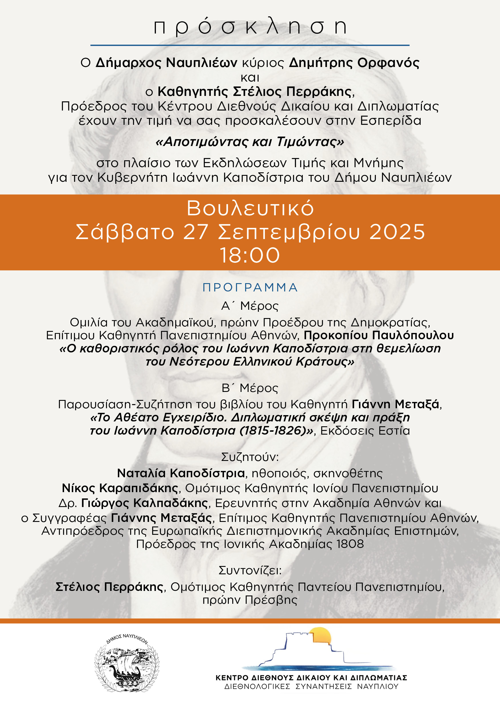 Πρόσκληση εκδηλώσεων τιμής και μνήμης Ιωάννη Καποδίστρια